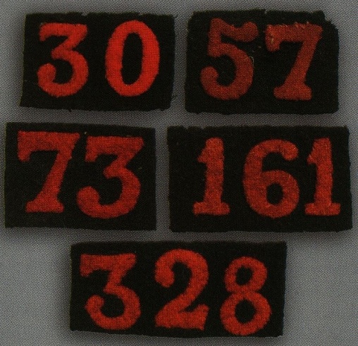The regimental insignia consisted of digits cut from fine madder red wool (NCOs wool), 25 mm high, which were sewn onto a dark blue patch 40 mm high and 3, 5 or 7 cm wide, depending on the number of digits needed (1-3). Out of urgency, some reservists wore kepis that were garnished with the old style insignia that had originally been sewn to the greatcoat. Thus, examples exist of insignia patches bordered with madder red piping, insignia cover-patches or insignia where the color of the digits and the patch were reversed.