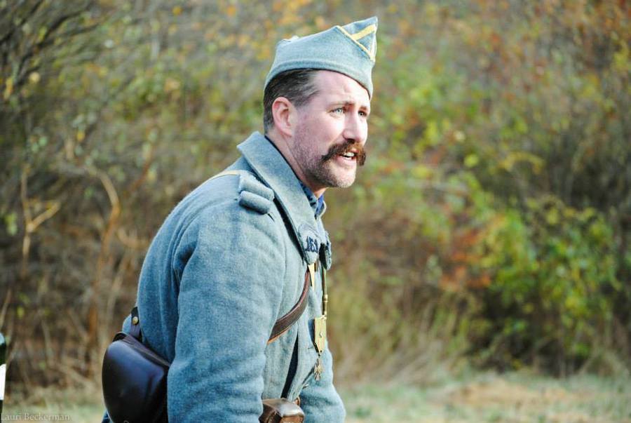 Speaking to the public about the life of the French soldier of 14-18. Old Bethpage Restoration Village, NY, November 2013.