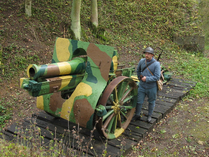 Arnaud Convard, of the Poilu of the Marne Association, stands beside a French 155mm canon, Fort Seclin, France, October 2004.